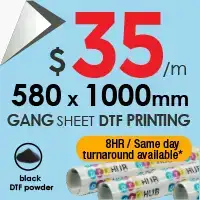 We specialize in high-quality DTF gang sheet printing with fast turnaround and professional service across Melbourne and Victoria. Our custom DTF heat transfers work on cotton, polyester, blends, and specialty fabrics, delivering vibrant, durable prints.