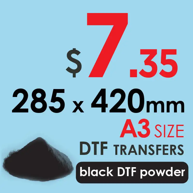 DTF Printing – Custom Heat Transfers A3 (285x420mm) | Black DTF Powder / Anti-Sublimation