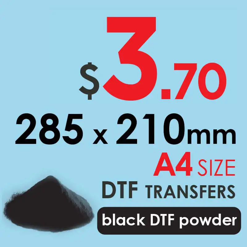 DTF Printing – Custom Heat Transfers A4 (210x285mm) | Black DTF Powder / Anti-Sublimation